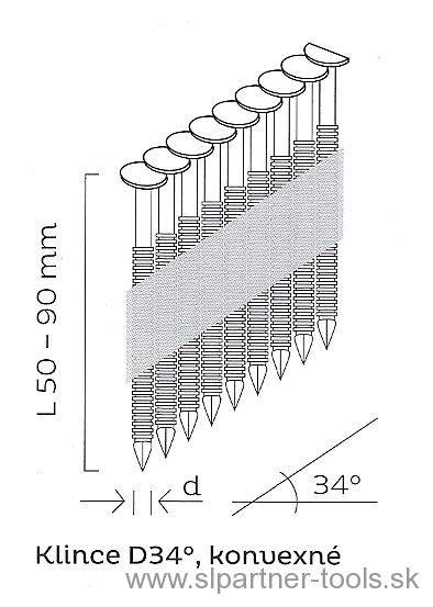 Klince D34° konvexné - použitie do plynovej klincovačky KMR 3890 (obj.č. KMR12100587)