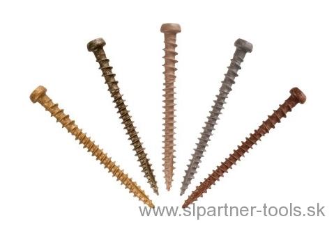 Skrutky sú vyrábané z uhlíkovej ocele so špeciálnou farebnou povrchovou úpravou.