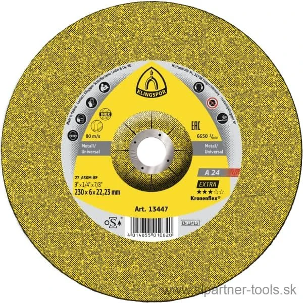 A 24 Extra pomáha profesionálnym užívateľom spracovávať kovy mimoriadnou rýchlosťou a v špičkovej kvalite. Brúsný kotúč Kronenflex sa môže použiť pre